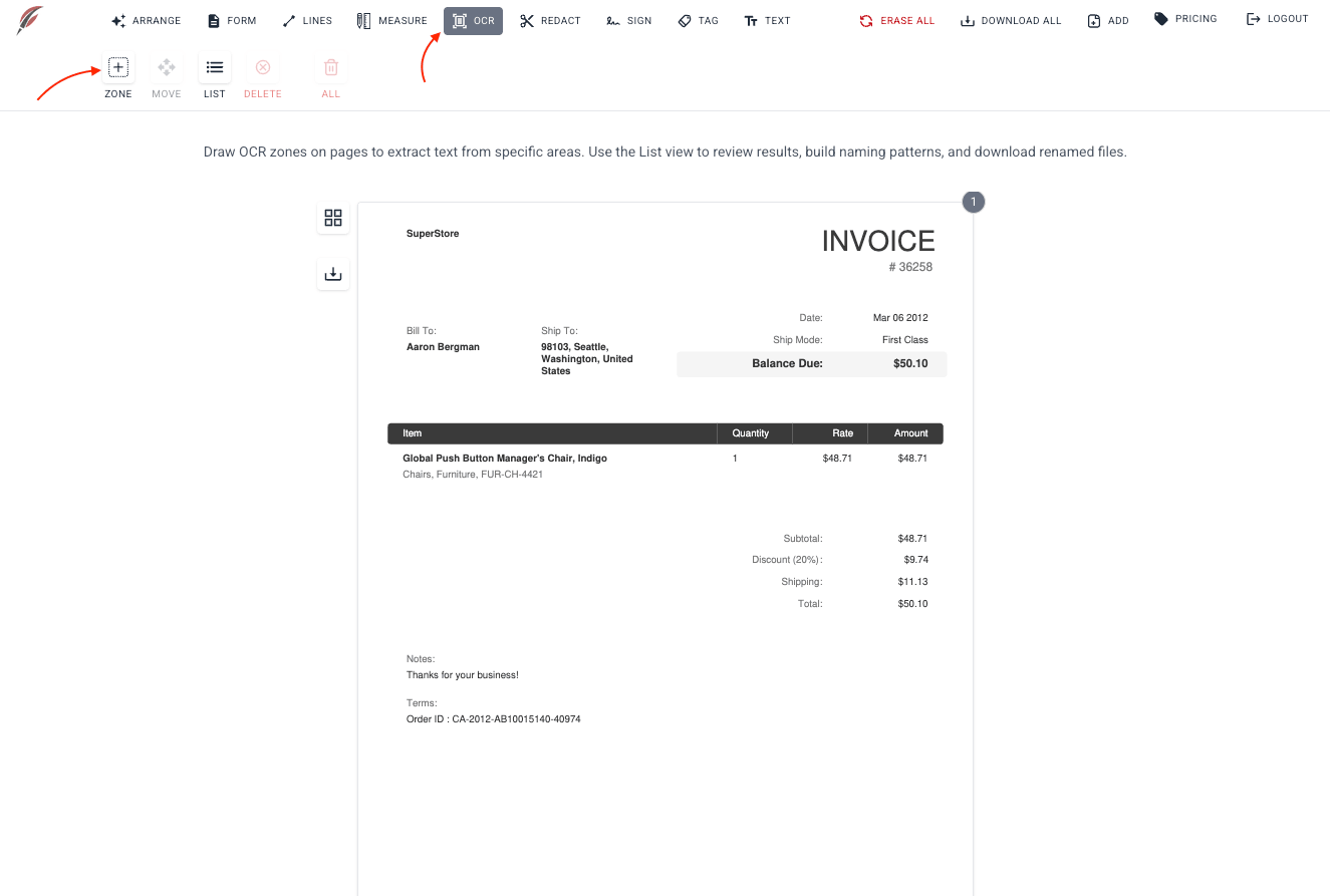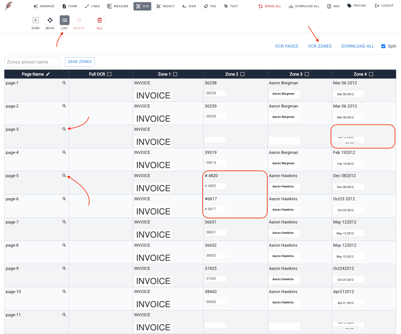 Now it’s time to extract the data from the document. Click the LIST tool and then OCR ZONES.